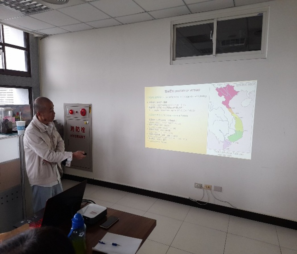 黎進和同學從「國土」、「人民」與「文化」三個面向切入,深入介紹越南的地理環境、民族特色以及豐富的文化傳統。從雄偉的自然景觀到熱鬧的都市生活,從多元的民族組成到日常飲食習慣,黎同學認真的解說與圖片展示,讓本處同仁對越南社會有了更全面的認識。
